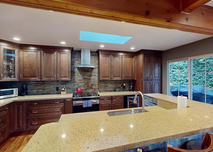 The venue is 10 minutes' drive from Porter Bass Winery. The lodge is sited 3 km to Guerneville. The centre of Monte Rio is at 2 km. You can get to Johnson's Beach in a few minutes by car. The nearest airport is Charles M. Schulz Sonoma County, about 35 km from the villa.